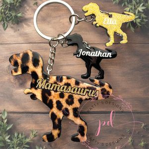 Product details for Mamasaurus Rex and Baby T-Rex Keychain.